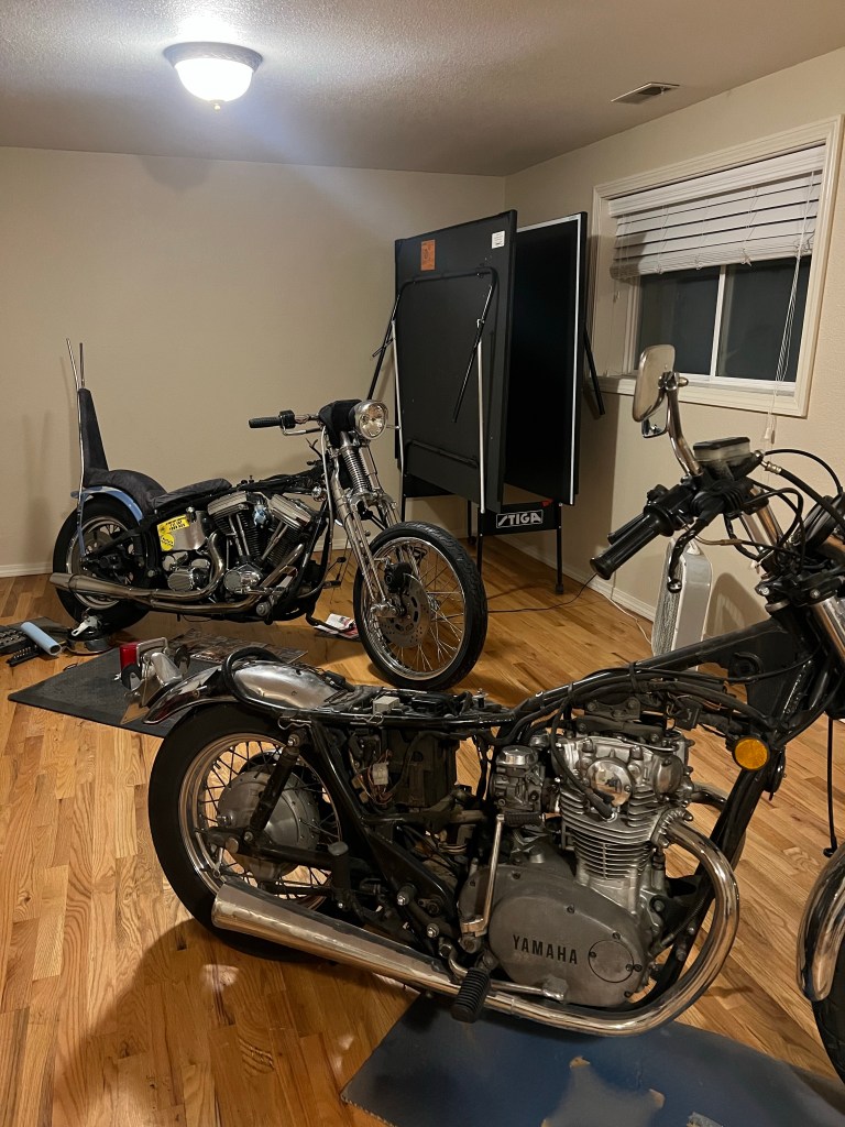 While in the basement the bikes will be completely disassembled and cleaned. Once everything is disassembled, we can chop our frames! Stay tuned.