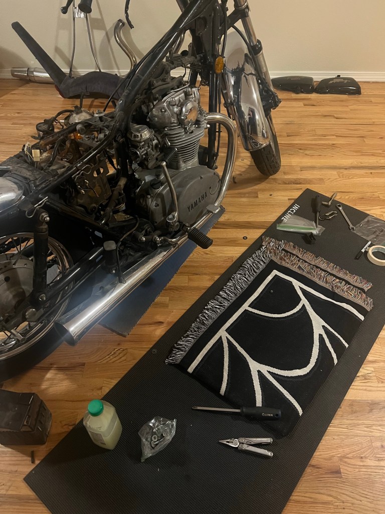 First order of business on the chopping block is removing all of the wiring! Both of us removed and cut out all of our wiring in order to make new harnesses for spring. Cam drained all of his fluids to pull his motor, and I removed most of my peripherals like the headlight and gauges in addition to the wiring.